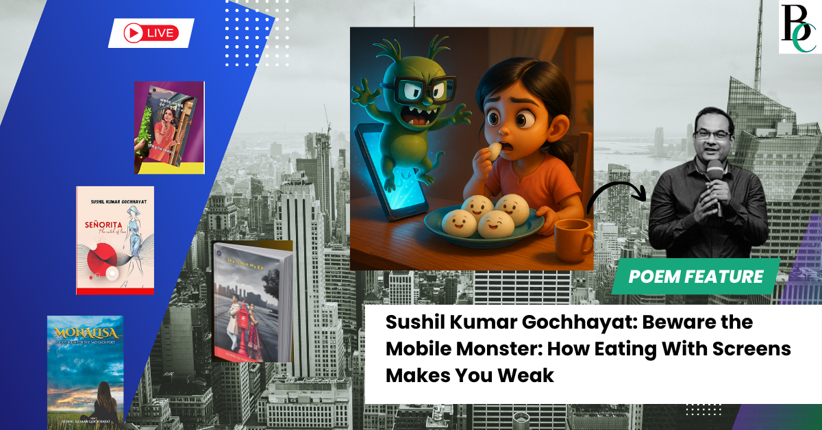 Moral: When you eat with a phone, the food becomes sad and the “Mobile Monster” grows strong. Eat with love and you grow strong instead!